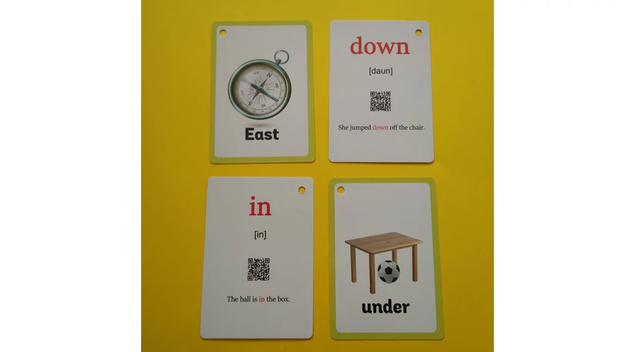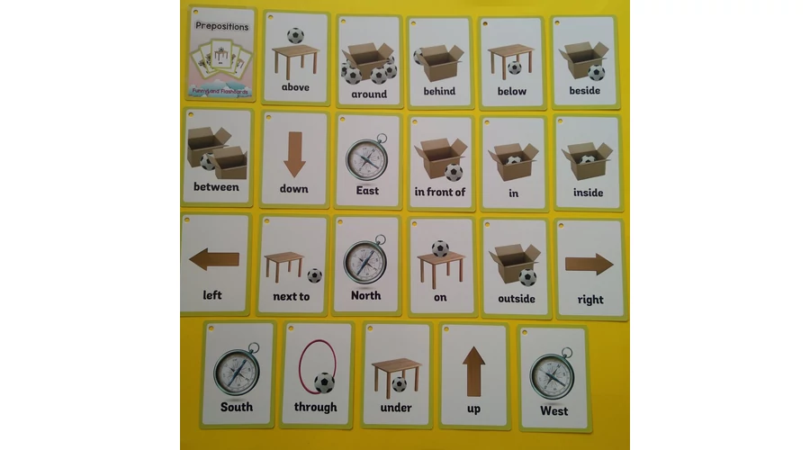 Angol szókártyák több témában — prepositions & cardinal directions, 22+1 db
