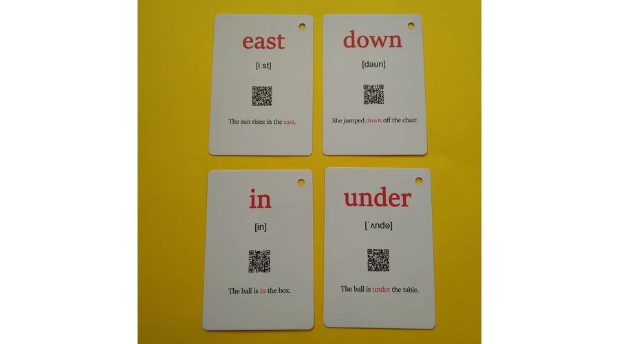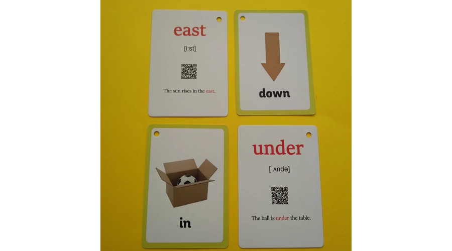 Angol szókártyák erős, vastagabb, fénylő felületű papírból, az előlapon az adott szó képe és „kiírása” található, míg a hátlapon a szó kiejtése (IPA-jelekkel), egy példamondat, és egy, a kiejtéströgzítő hangfáljra vezető QR-kód szerepel. 23 darabos (22 db szókártya + a fedlap) készlet, a felfűzéshez a kártyák bal felső sarkában kilyukasztva - a csomagban kulcskarikát is találsz. |
