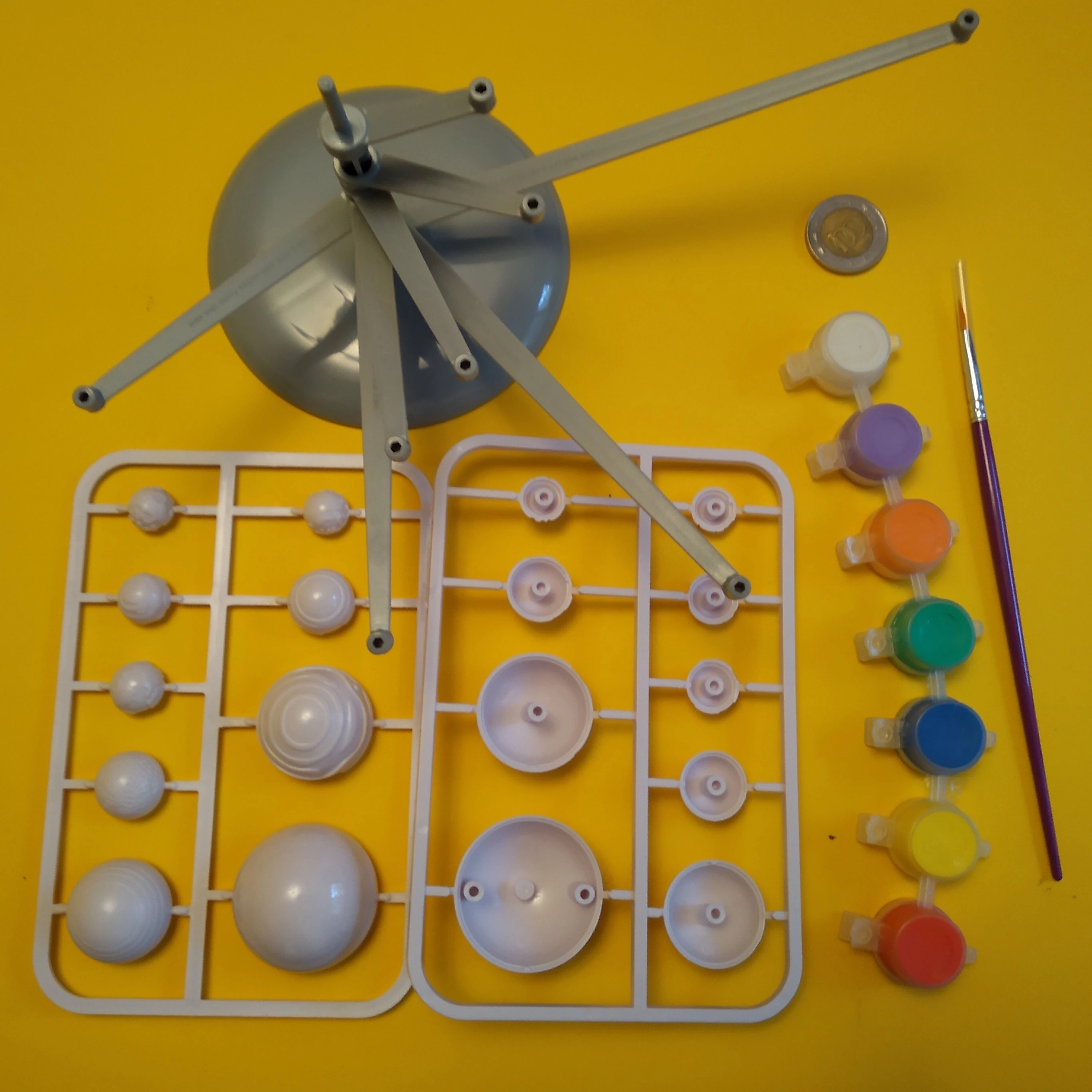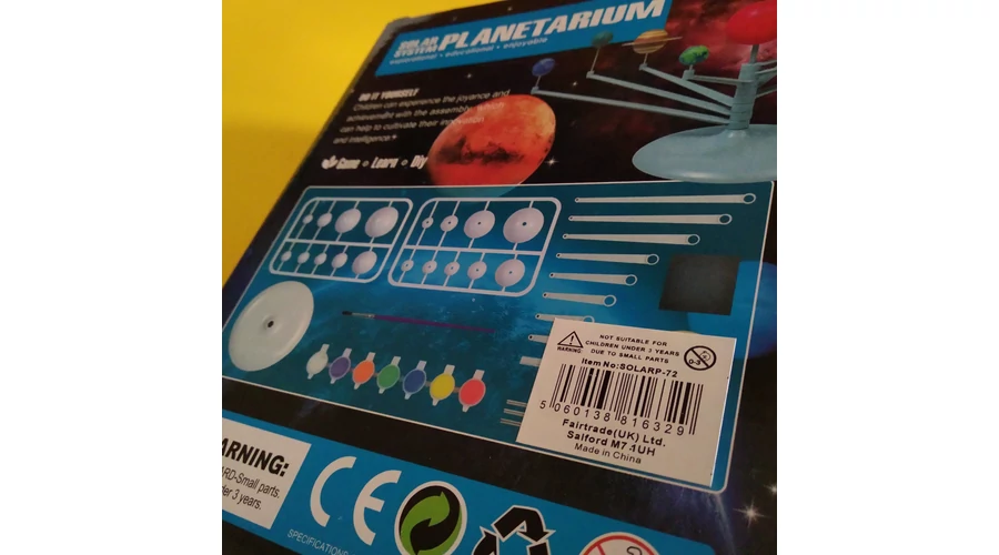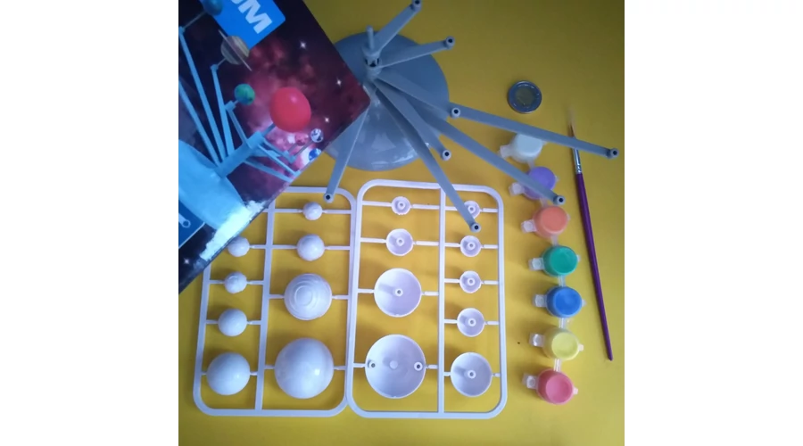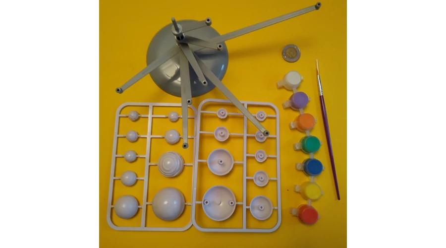 Kifesthető naprendszermodell forgókarokkal, fluoreszkáló