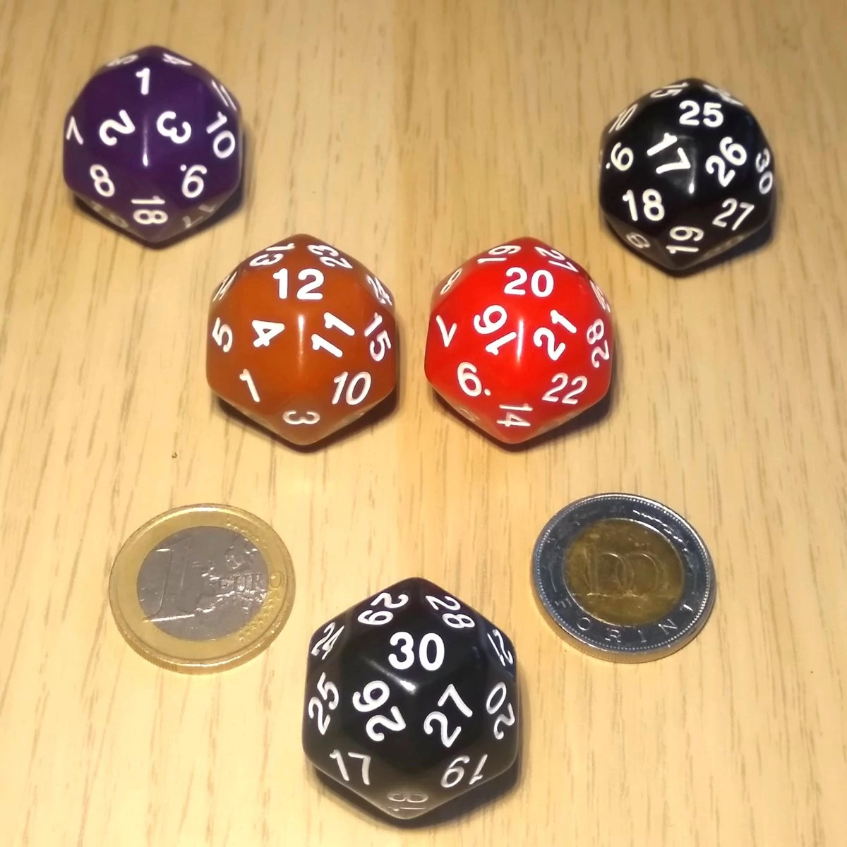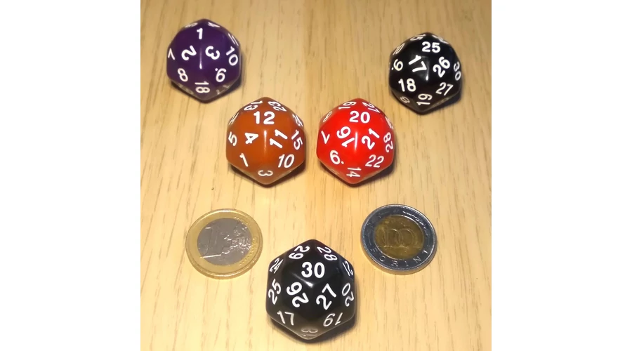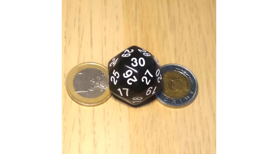 Harmincoldalú kocka lapszámozva 1-30-ig, több színben – fekete (cseresznyeméretű)