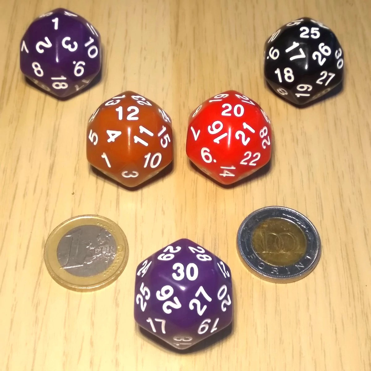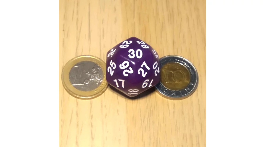 Harmincoldalú kocka lapszámozva 1-30-ig, több színben – lila (cseresznyeméretű)