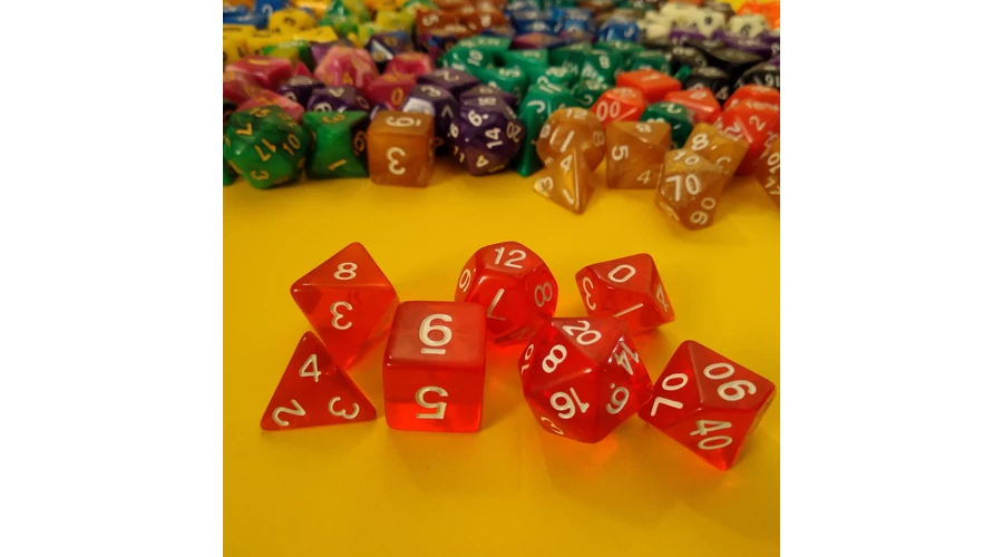 Kockakészlet lapszámozva, 7 db-os, áttetsző gránátvörös - sok egyéb színben!