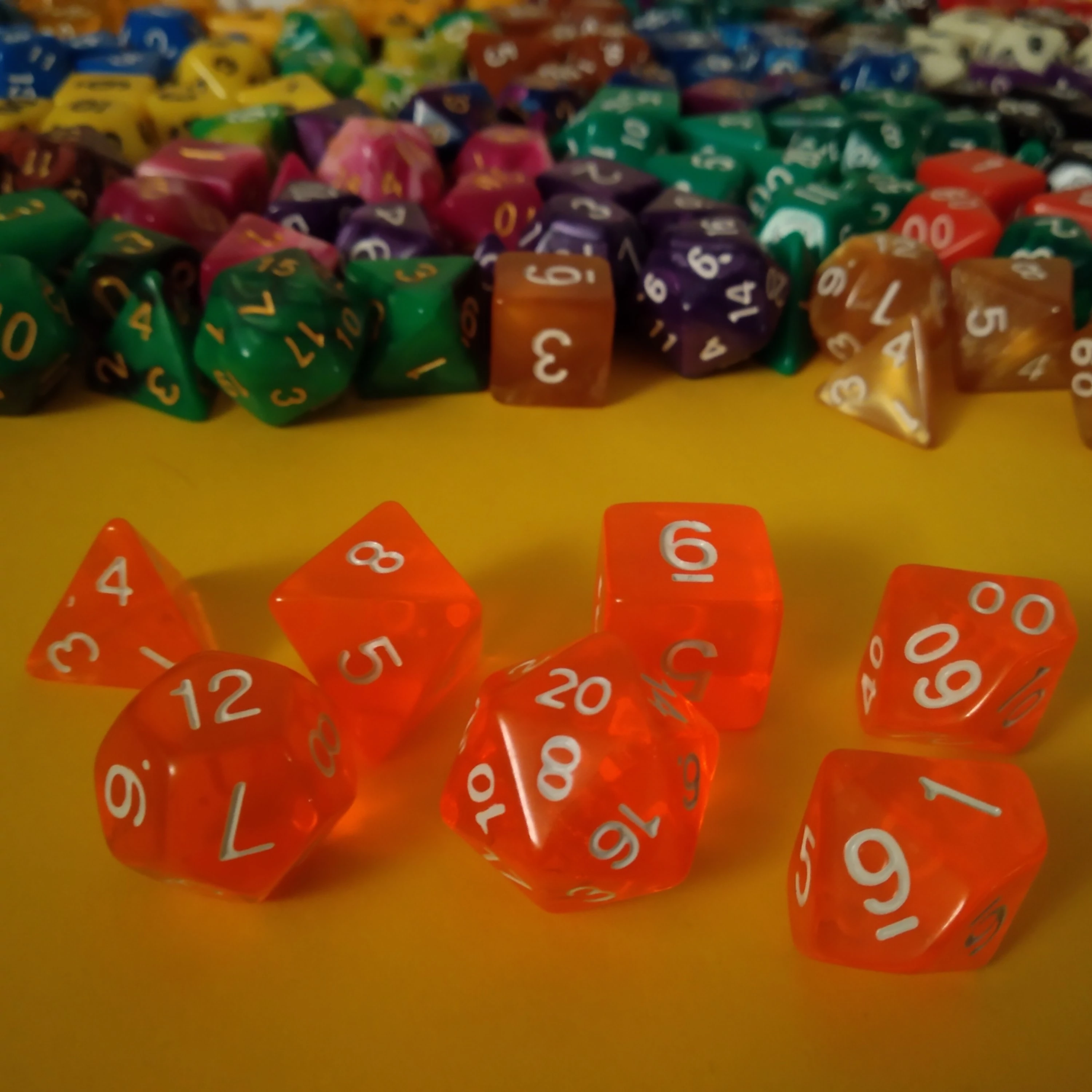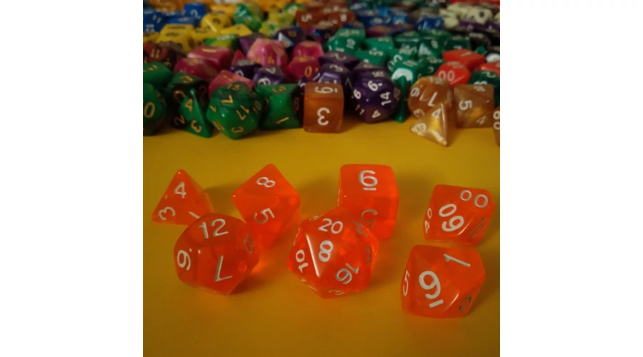 Kockakészlet lapszámozva, 7 db-os, áttetsző, narancssárga neon - sok egyéb színben!