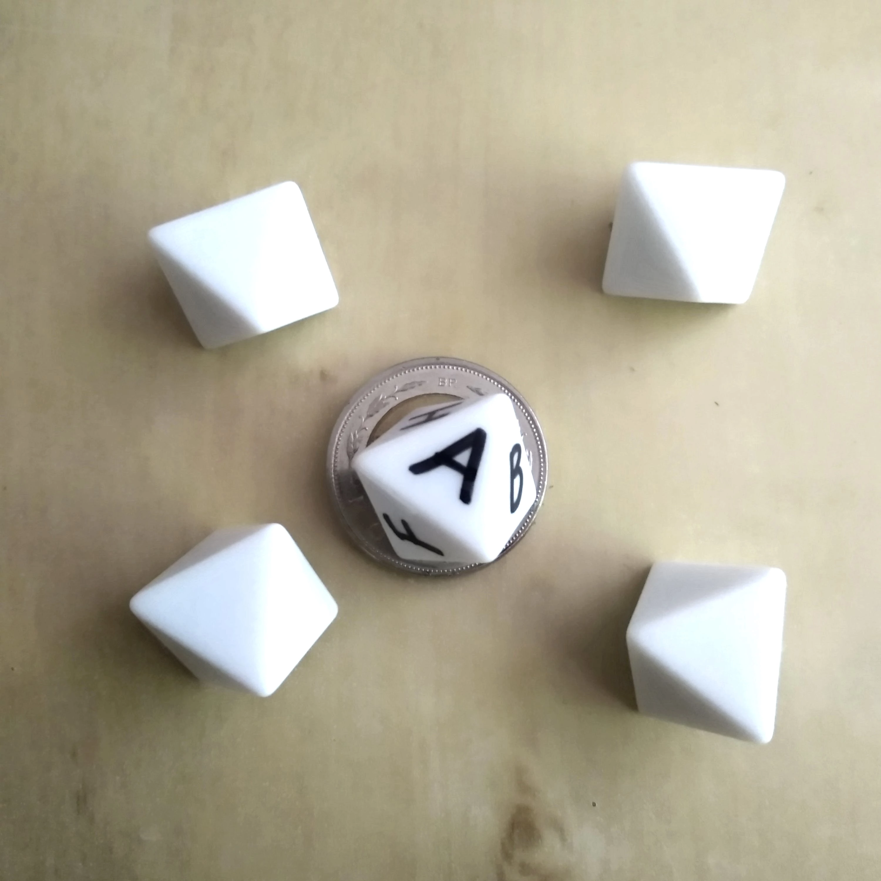 Nyolc lapból álló test, tanórai játékos feladatokhoz. Élhossza: 15 mm (ld. a termékképeken). Miután elgurítod, a legfelső lapja párhuzamos lesz a talajjal, így egyértelmű, „mit mutat". Szabadon írhatsz, rajzolhatsz a felületére – az alkoholos filctoll megmarad rajta, és az írás később alkoholbázisú oldószerrel (acetonnal / körömlaklemosóval stb.) le is törölhető. További ötletekért nézd meg lentebbi bemutatóvideónkat, vagy töltsd le az oldal alján pdf-ben csatolt feladatötleteinket! |